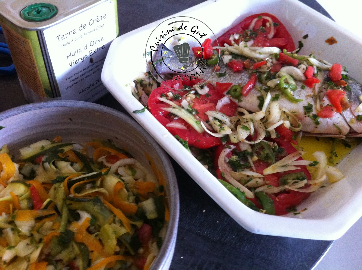 Published at 1200 × 896 in Dorade à la plancha et son steak végétarien