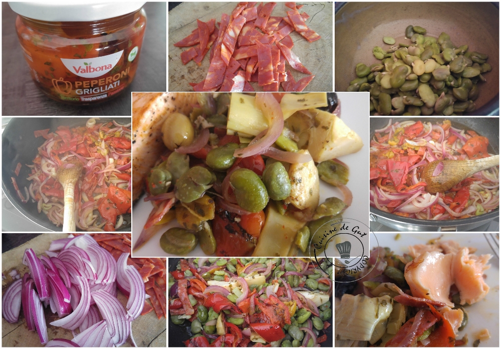 Published at 1000 × 696 in Poêlée de fèves aux artichauts poivrons et chorizo