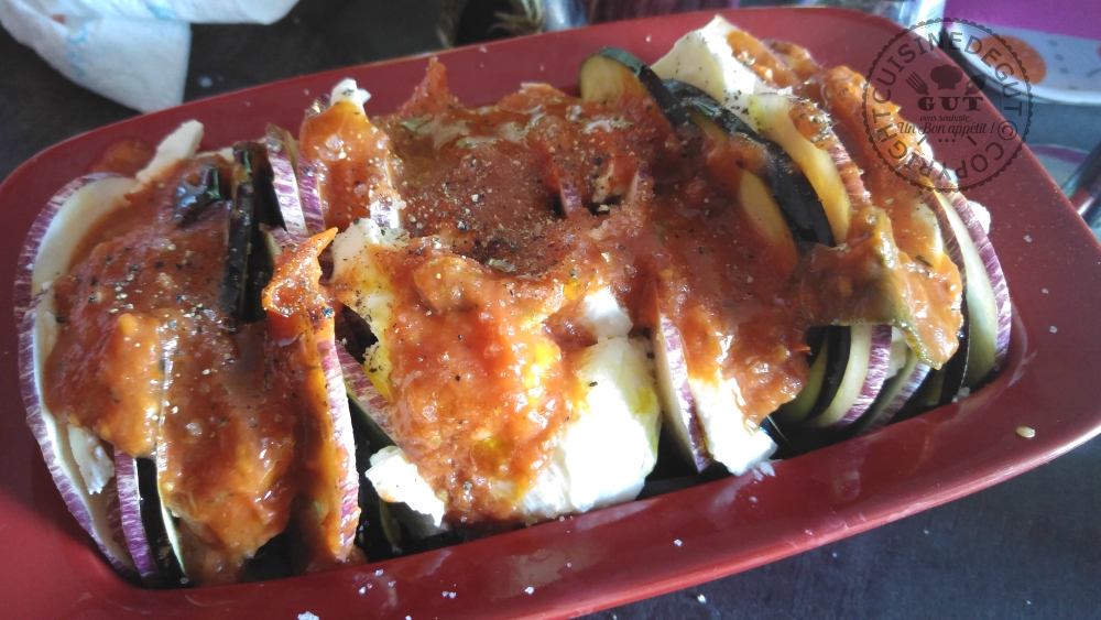 Gratin d’aubergines striées et violette mozza et sauce tomate1