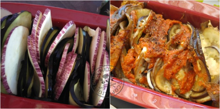 Gratin d’aubergines striées et violette mozza et sauce tomate3