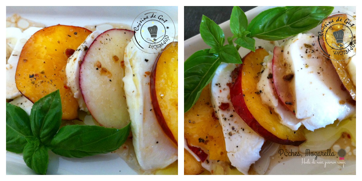 Published at 1200 × 600 in Nectarines, Mozzarella huile de noix et poivron rouge