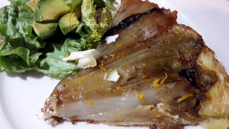 Tatin d’endives à l’orange au chèvre et miel d’oranger