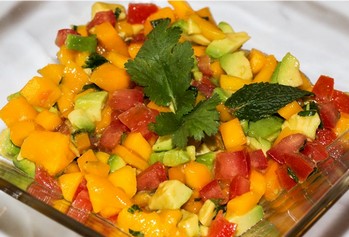 Ce mois-ci ma très chère amie Jackie du merveilleux blog (La cuisine de Jackie) s’est laissée séduire 2 fois par un plat que j’apprécie aussi beaucoup ma Salsa à la mangue et elle en a fait un plat magnifiquement coloré. Voici sa réponse à mon commentaire