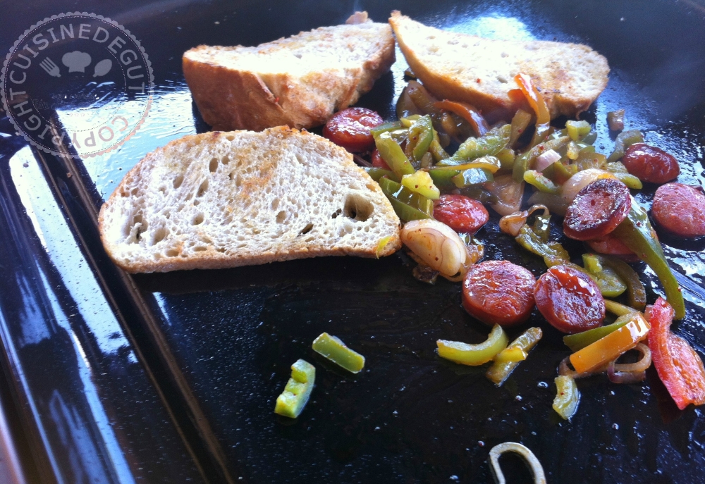 Montadidos de chorizo Espagnol, poivrons et poivronnade1