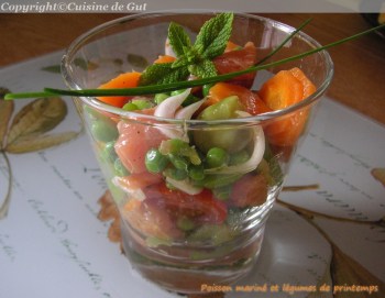 Poisson mariné et légumes de printemps