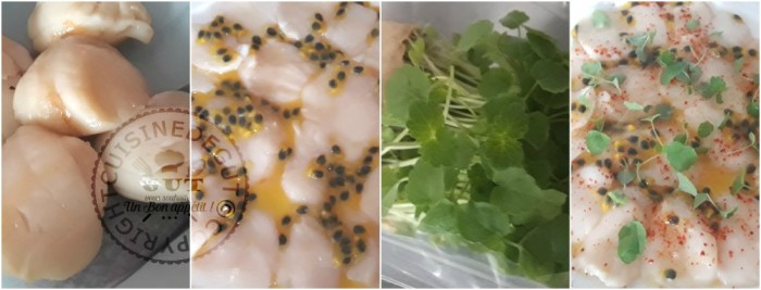 Published at 1000 × 382 in Carpaccio de St-jacques Fruit passion et Atsina