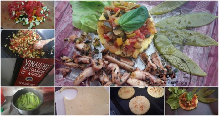 Published at 1000 × 533 in Canapé de polenta caponata et encornets