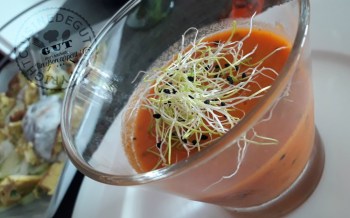 Panna cotta de tomates aux germes de poireaux, basilic et Atsina1