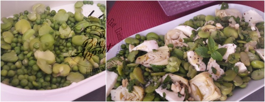 - Couper les artichauts en deux et les répartir sur les fèeves et petits pois