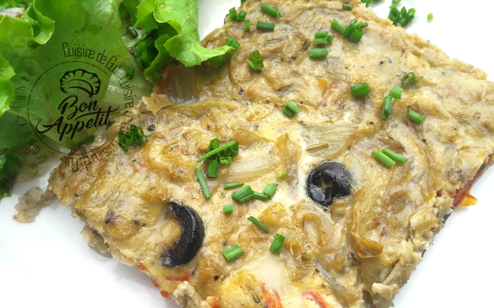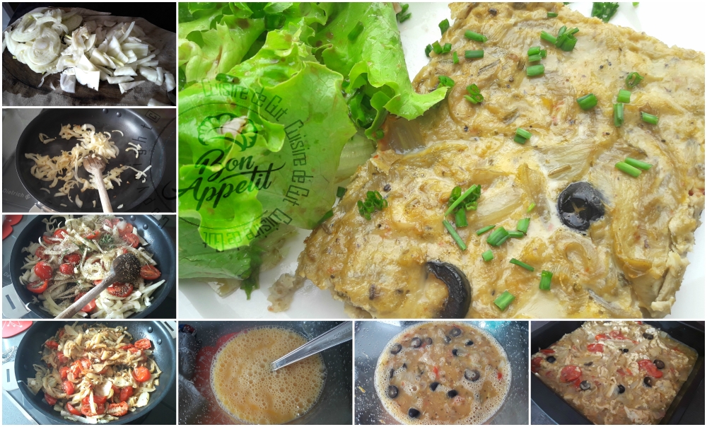 Lorsque j’ai fait récemment ma frittata aux fines herbes poivrons et chèvre je m’étais promis d’en refaire. Il me restait un fenouil qui attendait depuis un petit moment. Pas question de le perdre si je tardais trop il allait se perdre. J’ai donc décidé de faire une frittata avec. J’ai ajouté quelques tomates cerises, des olives et bien sûr pour donner un peu de goût un peut de thym séché, de la ciboulette et de l’oignon. C’est vraiment chouette comme type de plat car non seulement c’est vite préparé, moins riche tout de même qu’une tarte et c’est bien gourmand ! Sans égaler peut être l’autre qui grâce au chèvre était vraiment excellente, elle nous a bien plue tout de même ! Encore un petit repas bien sympa pour un soir avec une petite salade !