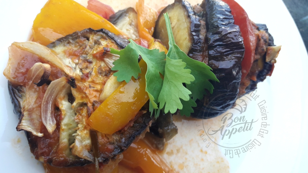 Le fait de faire pré-cuire les aubergines au micro ondes réduit considérablement le temps de cuisson, autrement il faut compter 1 heure de cuisson. Vous pouvez remplacer le tomates cerises de la farce par un jaune d’oeuf.