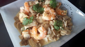Crevettes champignons au rivesalt curry et coriandre