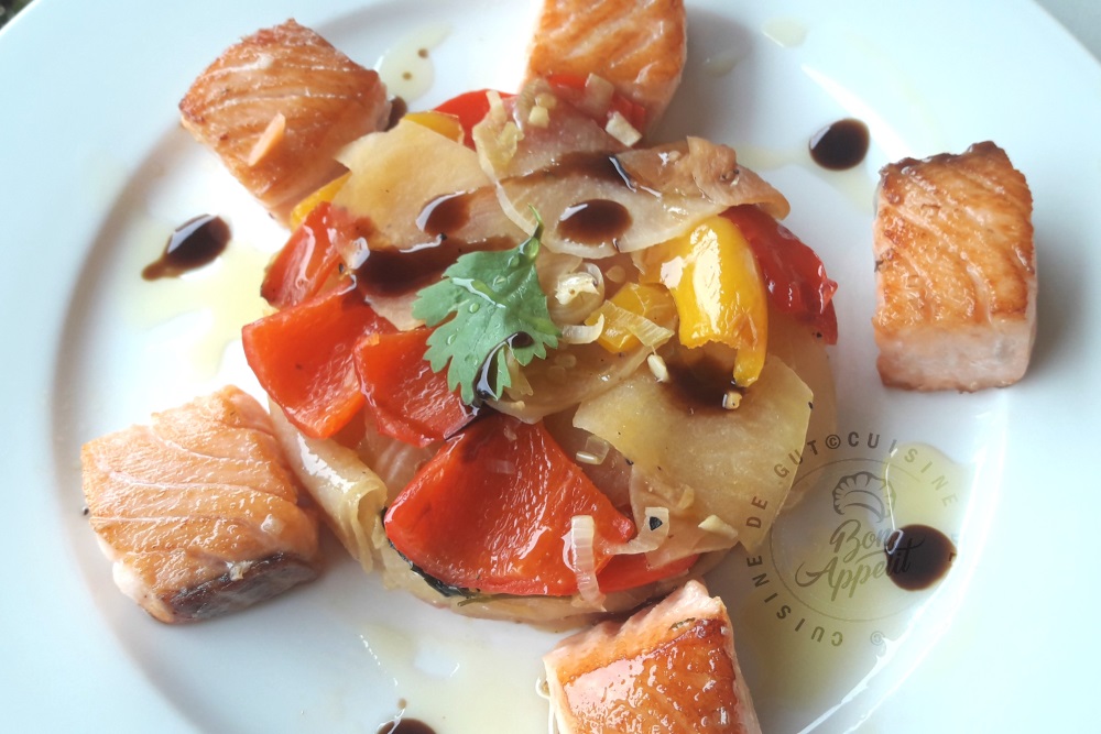 Published at 1000 × 667 in Carrés de saumon grillés en légumes surprise