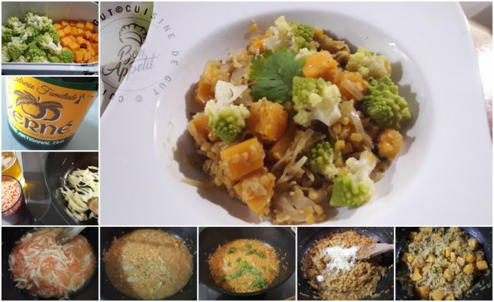 Published at 1000 × 614 in Lentilles corail au cidre, butternut et chou romanesco