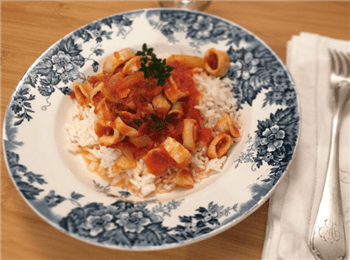 « les calamars ont été accueillis par des « oh non! pas ça » et finalement rapidement les assiettes furent nettoyées, recette validé par les filles, c’est pas rien ! merci Gut ! «