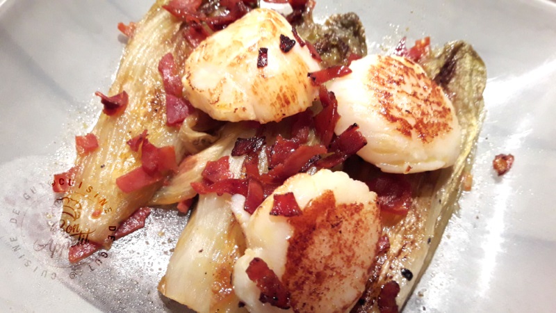 Recette de Noix de Saint Jacques sur lit d’endives et chorizo