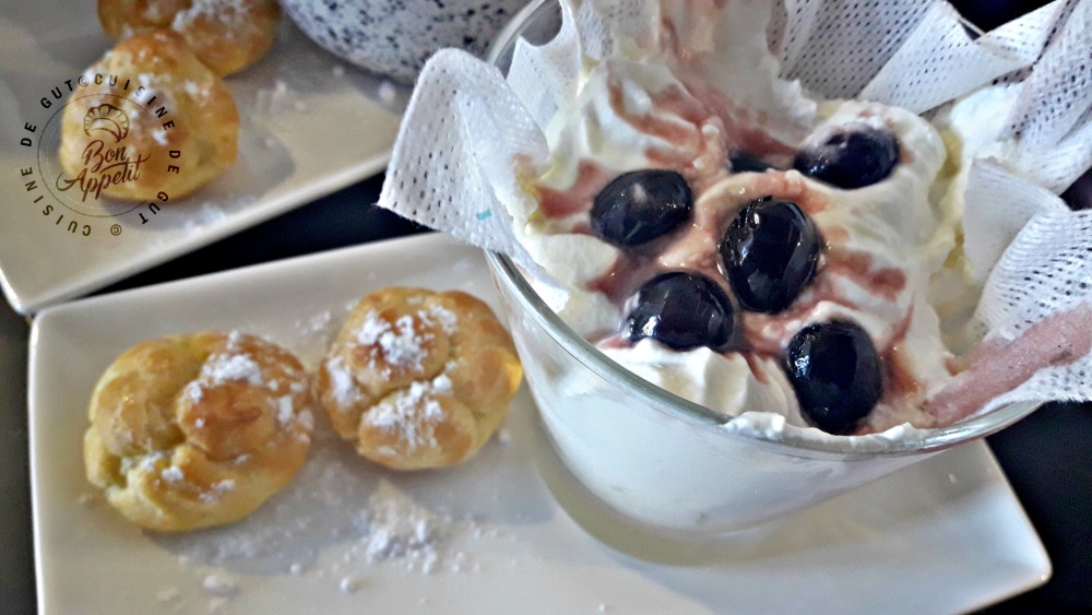 Avec la quantité que j’ai faite il y en avait pour 4 personnes mais je peux vous dire que je n’ai absolument pas regretté que mes verrines soient aussi imposantes ! Ce fromage frais que j’avais bien égoutté, mélangé avec cette chantilly maison à la vanille, parfumé ensuite d’un peu de sirop de mes cerises Amarena, hummm !! c’était divin ! Je l’ai dégusté avec des petites chouquettes que j’avais fait décongeler pour l’occasion (qui soit dit en passant sont aussi une petite spécialité d’Ile de france) eh bien je peux vous dire que nous nous sommes fait un excellent dessert et ceci grâce à toi ma chère Martine !! Que j’aime reprendre tes petites idées simples mais si gourmandes !! Merci à toi