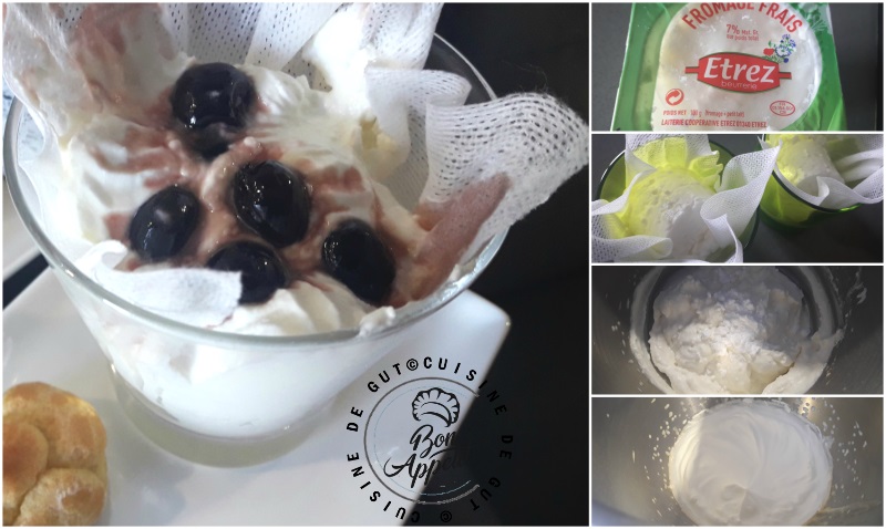 Vous l’avez compris le fromage doit être bien égoutté ! Ne pas oublier de mettre la crème au frigo pour qu’elle soit bien froide pour réaliser une bonne chantilly