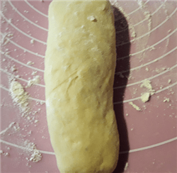 - Rassembler la pâte avec une corne de boulanger et avec les mains bien farinées, tout en s’aidant de la corne former un gros boudin