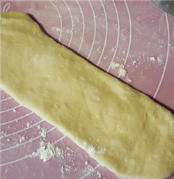 - Tourner d’un quart de tour (pliure sur la gauche) et étaler à nouveau avec le rouleau