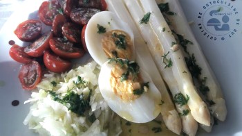 Assiette d’asperges chou rave oeuf dur et tomates