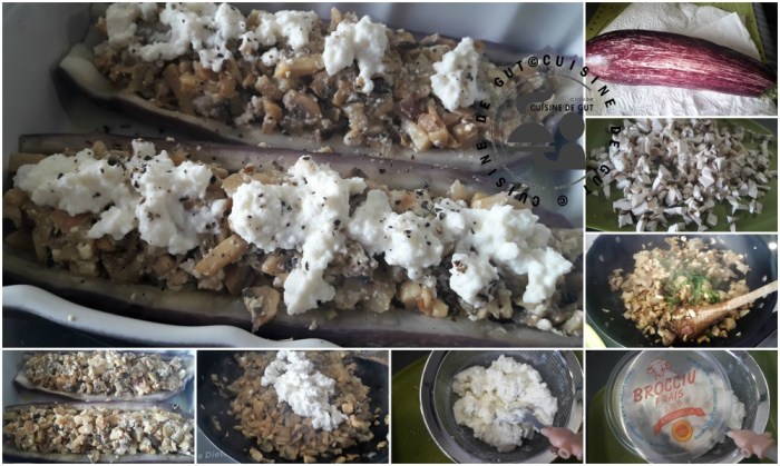 Published at 1000 × 599 in Aubergine farcie aux champignons menthe et brocciu