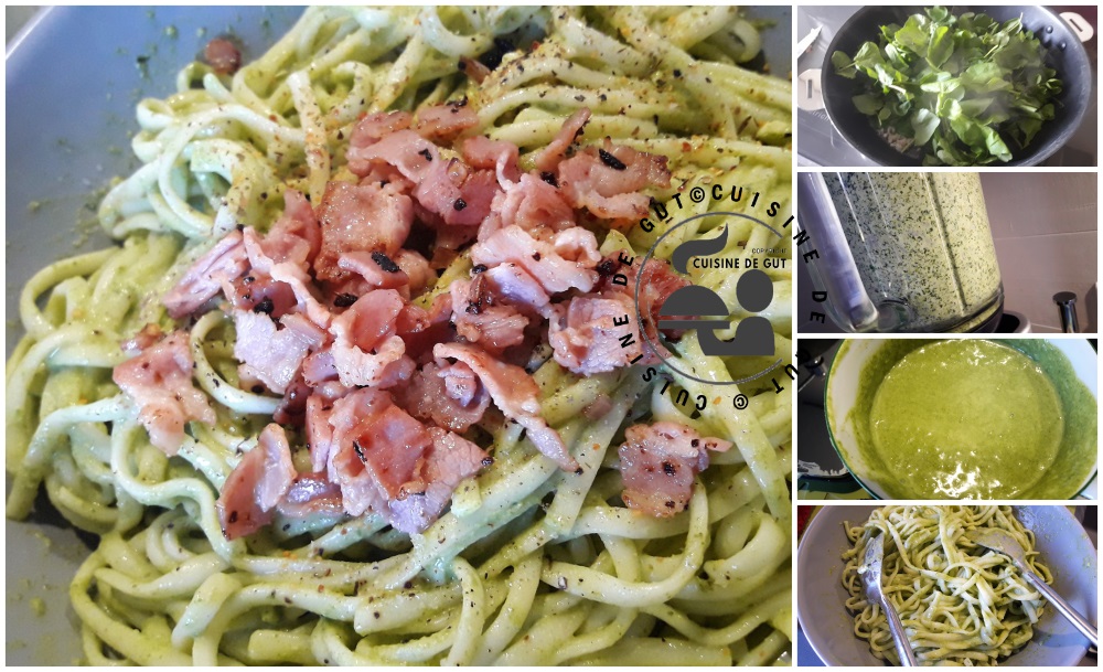 Published at 1000 × 609 in Linguines au bacon sauce au cresson