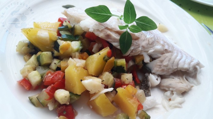 Published at 1300 × 731 in Filet de turbot aux légumes d’été et mangue