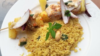 Brochettes d’espadon saveur coco et semoule épicée