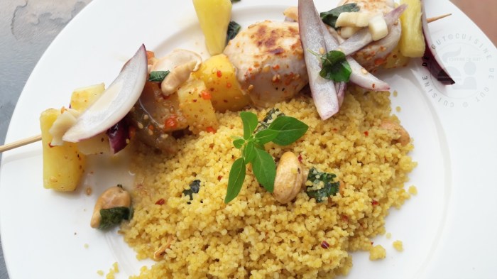 Published at 1300 × 731 in Brochettes d’espadon saveur coco et semoule épicée