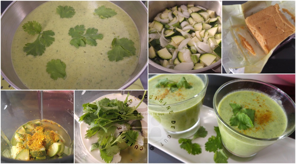 L’année dernière j’avais réalisé une soupe froide de courgettes au chavroux dans laquelle j’avais mis un bouquet de basilic et je m’étais sacrément régalée ! C’était rafraichissant et ça changeait du gaspacho poivrons tomates. Du coup je l’avais refaite plusieurs fois au cours de l’été mais cette année j’ai voulu changer et cette fois j’ai choisi pour cela des saveurs indienne : Curry intense (donc bien relevé) et coriandre. Normalement ce devrait être pas mal du tout.