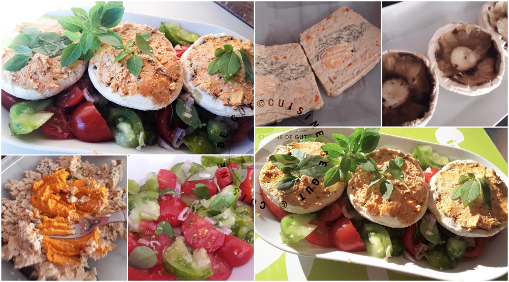 Published at 1000 × 555 in Champignons farcis houmous de poivron et terrine de saumon