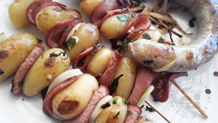 Brochettes de grenailles et filet mignon fumé à la plancha2