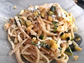 Linguines courgettes ail menthe citron et burrata