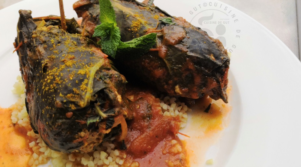 Published at 1000 × 555 in Farcis d’agneau boulgour parfumés en feuilles de blettes