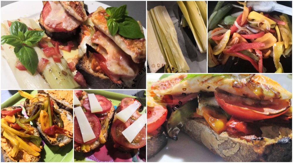 Published at 1000 × 555 in Bruschetta Poivrons Rouget et Poireaux vinaigrette