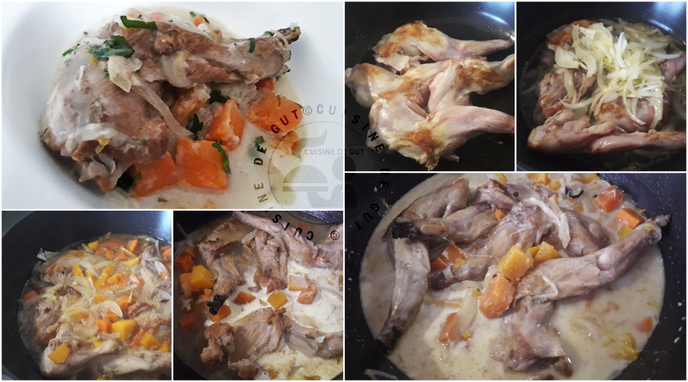 Depuis que j’ai découvert la cuisine au cidre, (je vous invite d’ailleurs à revoir mon panel de plats faits avec) lorsque l’on m’a offert ce bon cidre Kerné, j’aime de temps en temps en utiliser, même si je n’ai plus ce bon cidre. Cette fois c’est un essai avec le lapin. En général j’utilise plus du vin blanc ou du vin rouge comme mon lapin chasseur ou mon Stifado de lapin qui sont des plats exceptionnels. Comme légume j’ai utilisé la Butternut qui s’était révélée excellente avec du cidre dans mon plat de lentilles corail au cidre, butternut et chou romanesco. J’en ai encore l’eau à la bouche !