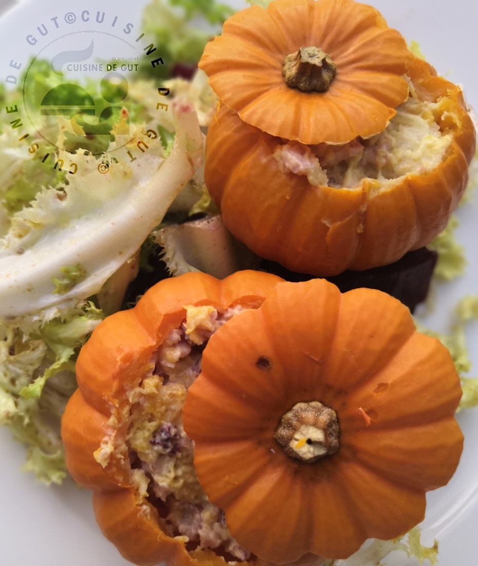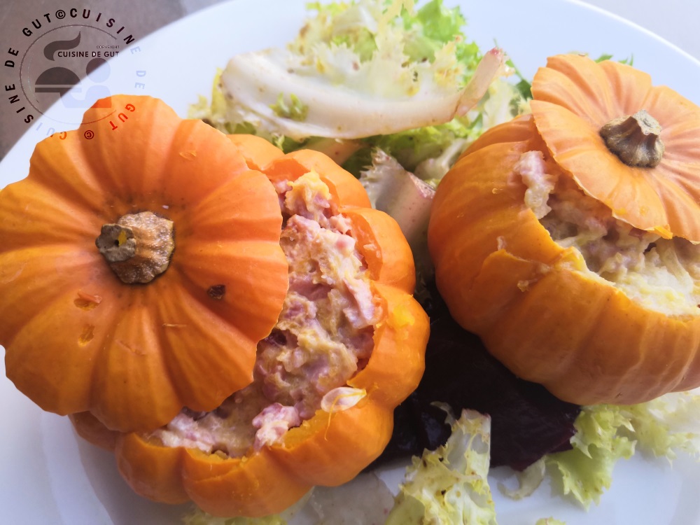 Allez on va terminer la semaine sur une petite recette de courge : La jack be little ! Vous connaissez ? je les avais déjà remarquées sur certains blogs mais je n’en avais jamais trouvées jusqu’ici. C’est maintenant chose faite. Chez Grand frais ! Eh oui encore ! Du coup je ne me suis pas posée de question, elles ont filé tout droit dans mon caddie. Je voulais les faire initialement avec un oeuf cocotte mais j’ai changé mon avis d’épaule car comme j’avais du Chavroux je voulais les cuisiner avec. Un oeuf au chèvre Heu… je ne sais pas mais je ne le sentais pas trop…. Oh j’ai fait tout simple j »ai mélangé la chair de ces courges au Chavroux et au bacon !