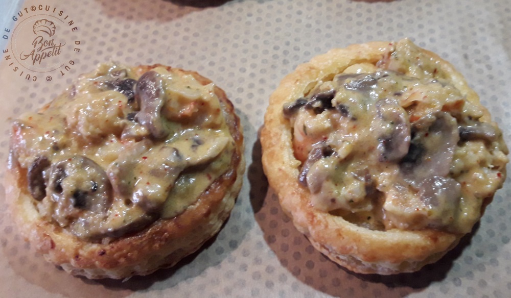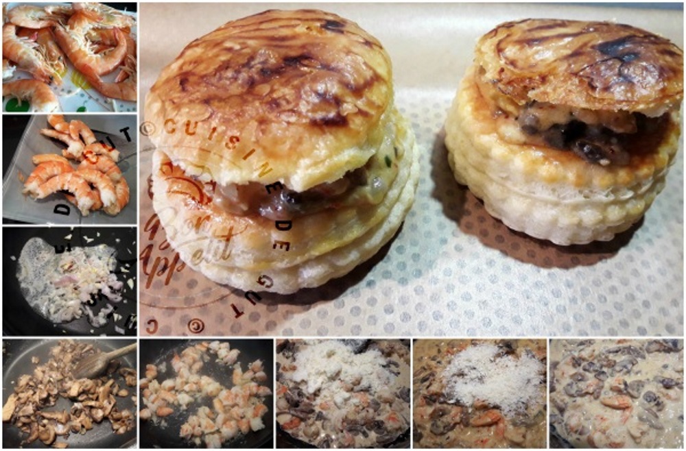 Bouchée crevettes champignons sauce crémeuse au parmesan