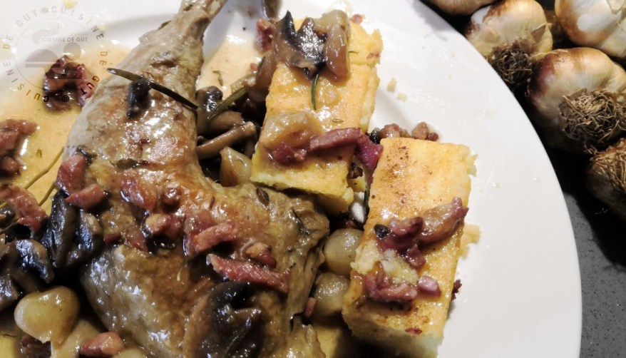 Cuisse de Pintade au cidre champignons et polenta au parmesan