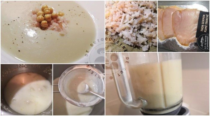 Published at 1000 × 555 in Crème de chou fleur fenouil et thon Germon fumé