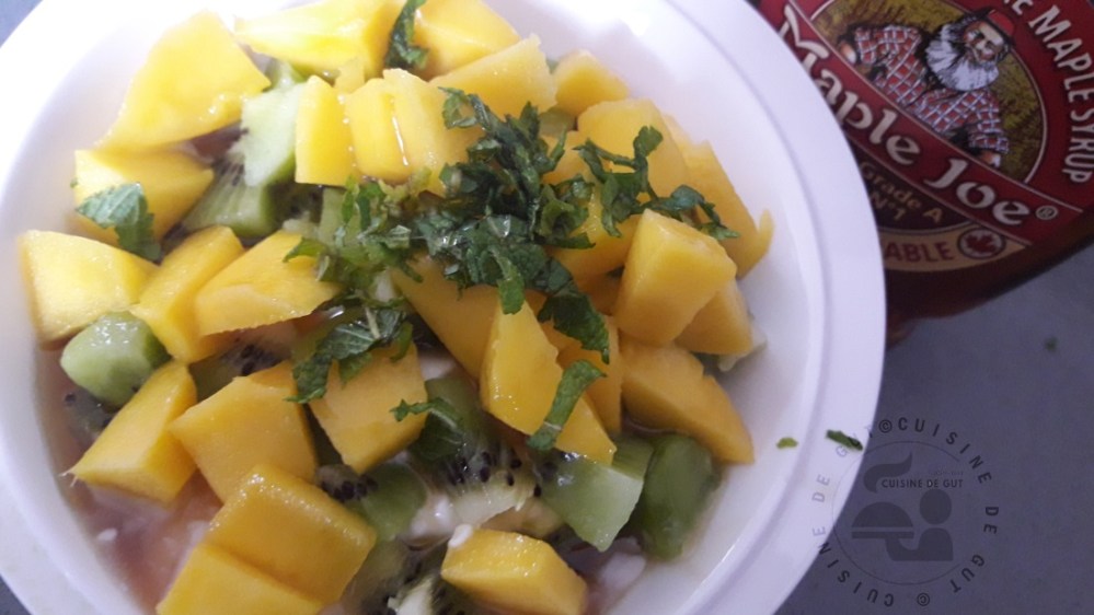 Ananas et kiwis fromage blanc et sirop d’érable !