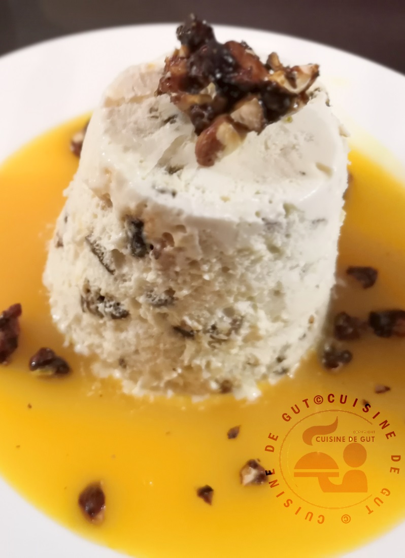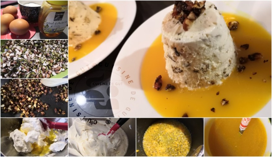 Le nougat glacé est un vieux dessert qui est complètement passé aux oubliettes. J’en faisais dans le temps puis j’ai perdu la recette et de ce fait il est tombé aussi dans l’oubli. On le faisait avec un coulis de fruits rouges très souvent mais je dois dire qu’avec ce coulis aux fruits de la passion c’était bien meilleur ! gros bisous Elo