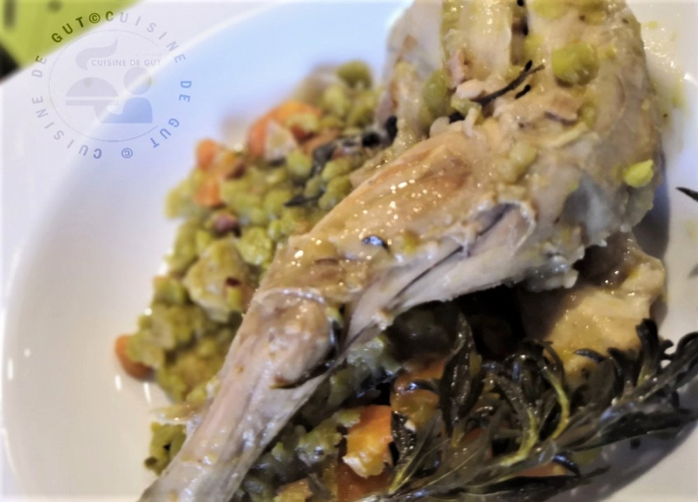 Lapin pois cassés carottes à la bière rouge Grimbergen