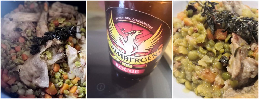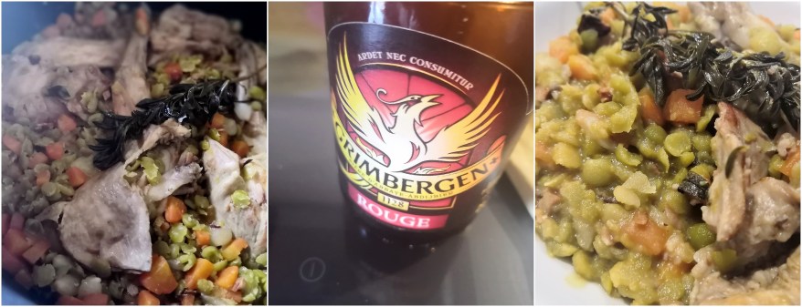 Excellent ce petit plat ! Je ne vous dirais pas qu’il avait un parfum de fruits rouges ce serait mentir. En fait on ne sent pas trop la bière ce qui est normal vu qu’elle est diluée avec de l’eau mais j’ai tout de même trouvé que mes pois cassés étaient encore meilleurs que d’habitude, c’était peut être grâce à cette bière ? Voilà un bon plat que je referais et que je suis heureuse d’inscrire à cuisinons de saison !