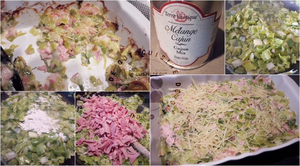 Gratin de poireaux jambon aux 2 fromages et épices de cajun