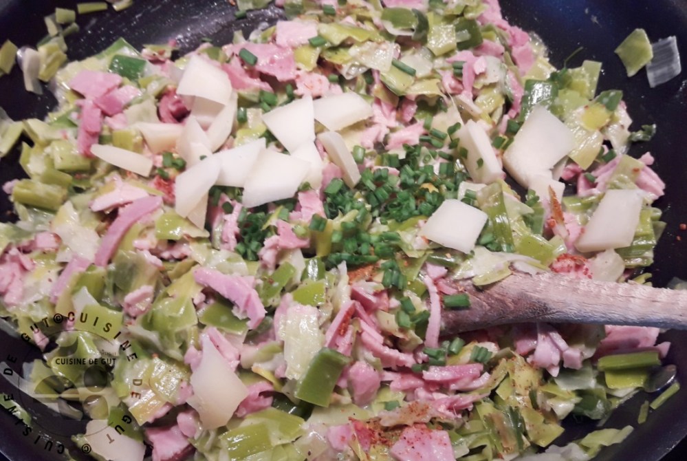 - Ajouter les épices, puis le jambon en morceaux