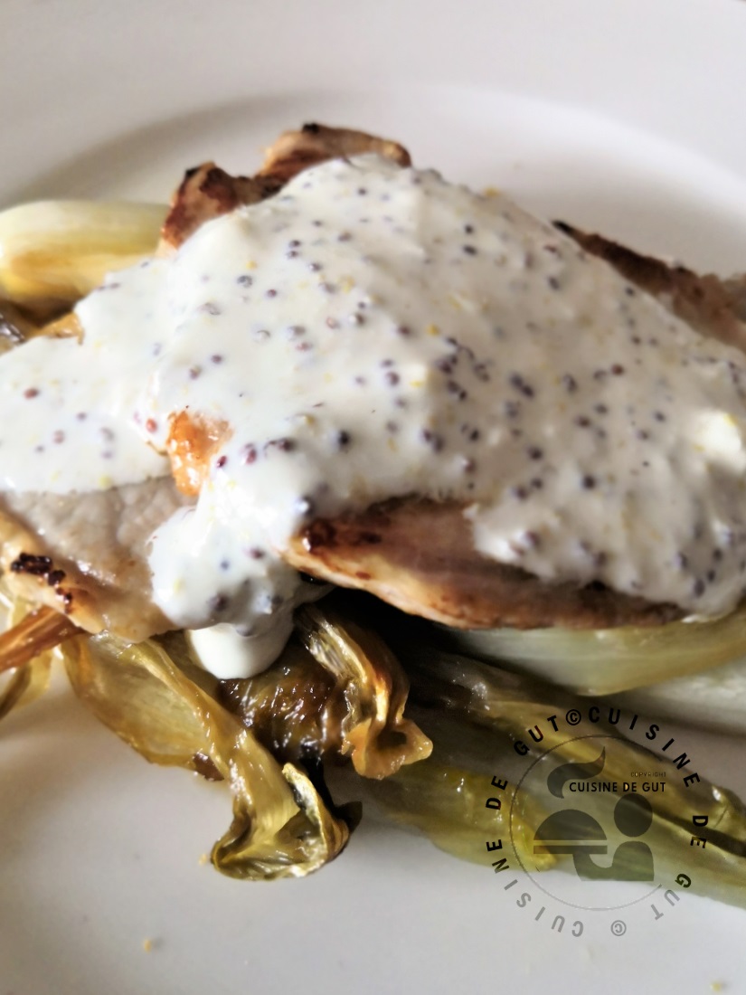 Published at 825 × 1100 in Porc endives légèrement truffées sauce moutarde