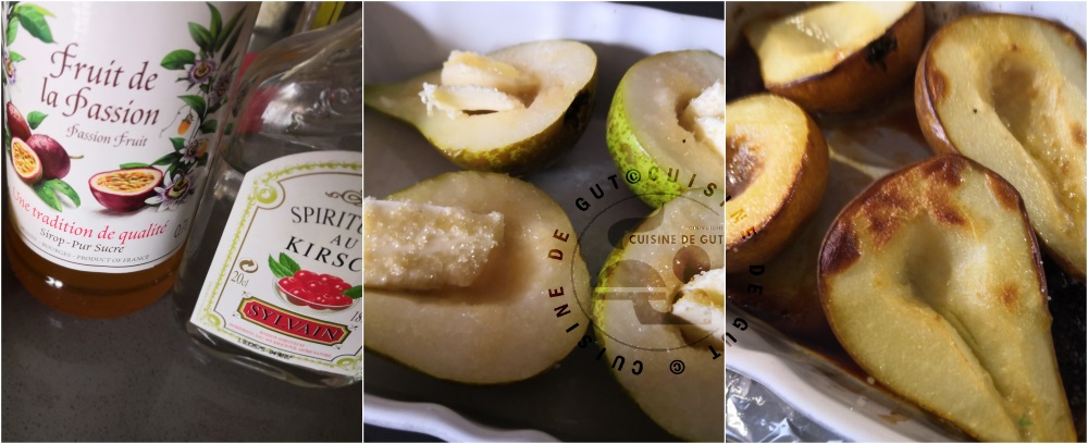 poires rôties au four sirop fruits de la passion et kirch