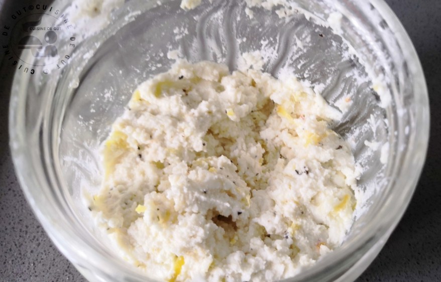 - Dans un saladier, mélanger la feta avec le fromage frais.